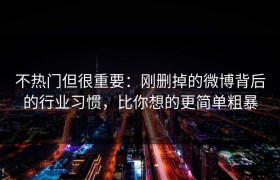 不热门但很重要:刚删掉的微博背后的行业习惯,比你想的更简单粗暴 在信息爆炸的社媒时代,谁都可能因为一...