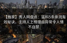 【独家】秀人网盘点:猛料5条亲测有效秘诀,主持人上榜理由异常令人情不自禁